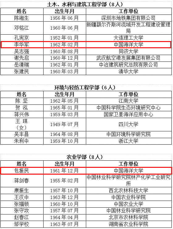 新当选的67名院士中,山东有2位,全部来自青岛:中国海洋大学李华军当选土木、水利与建筑工程学部院士;中国海洋大学包振民当选农业学部院士。