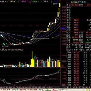那些涨停的股票或者是短期内快速上涨的股票,在他们发起总攻的那一瞬间会出现异常的成交量,平时只有几十手的成交量水平,一旦股票开始快速上涨,成交量马上就变大几倍甚至几十倍,突然出来的大笔成交让我们都不约而同地认识到主力开始拉抬了,在分时图中留下了一根很长的成交量线,我们形象地叫它为“顶天量峰”。