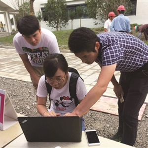 江苏移动技术人员在高校进行网络调测,以保障迎新现场的用户体验感知。