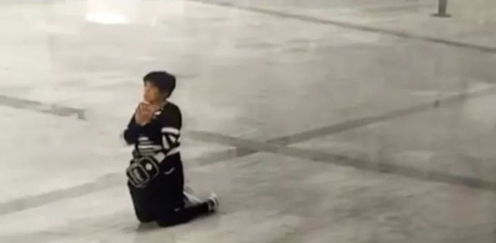 可能是为了给做手术的女儿祈祷,跪地祈祷五个小时的母亲。