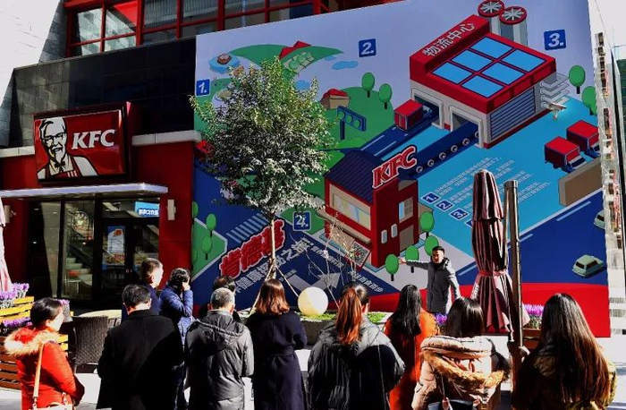 11月23日一早,石家庄肯德基勒泰餐厅门口贴起一幅近70㎡的漫画。是这个样子的: