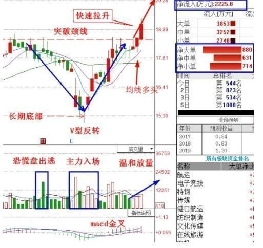 这支股票是非常典型的上升回档股票,该股长达两年的调整之后,在底部走出V形底走出反转趋势,底部已经确立,MACD金叉,量价起升,前期主力吸筹完毕开始拉升,在主力追踪红线持续向上,资金持续流入的前提下,流动资金泛红,所以像这种走势的股票,后期上涨的概率还是很大的,关键是要及时把握住,所以在股市投资,最为关键的还是要有自己的投资技巧,再说我也很乐意教更多股民如何理性投资、价值投资。