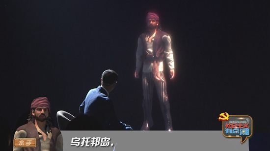 这段“穿越”的对话,是《社会主义“有点潮”》第一集《乌托邦是座什么岛?》的开头。水手的形象是用全息技术投射出来的,现场的观众能看到一个逼真的水手与主持人在对话。赵超军说,他们花了“血本”,近百万元,电视节目现场运用这项技术的并不多见。