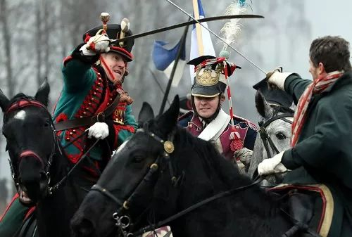 11月26日,在白俄罗斯布莱利附近,人们身穿古军装再现别列津纳河战役。当日,来自俄罗斯、白俄罗斯、法国等国的军事历史爱好者重现了当年别列津纳河战役的景象,以纪念别列津纳河战役205周年。1812年11月26日,拿破仑率领的法国军队从俄国败退至别列津纳河时遭到围攻,损失惨重。