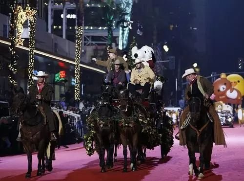 这是11月26日在美国洛杉矶第86届好莱坞圣诞游行上拍摄的游行队伍。第86届好莱坞圣诞游行26日在美国洛杉矶好莱坞大道上举行,庆祝2017年圣诞季的开始。