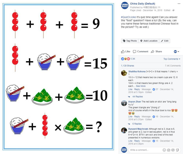 编辑将这道题放在了《中国日报》官方推特账号上来考一考海外的网友,立刻引起了他们的头脑风暴,开始讨论起正确的答案。