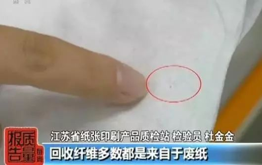 部分纸巾纸用废纸做原料除了内装量不足以外,本次检测发现纸巾纸存在的第二大问题是,生产企业违规使用回收纤维作为原料。