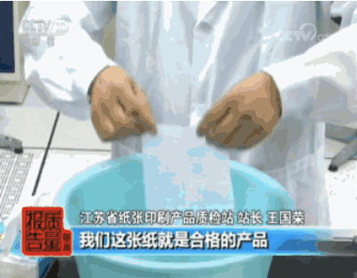 检测人员介绍,纵向湿抗张强度,是纸巾纸重要的使用性能指标。消费者可以简单地自行评判这项指标的大致情况:在家可以把一张纸放在盆里,一个不合格的产品,整个泡在水里完全拎不起来。在使用不合格产品的时候,用它来擦试嘴巴、汗水的过程当中,跟拎起来一样很容易破裂。同时它会有一些小的纸毛粘在嘴巴上。