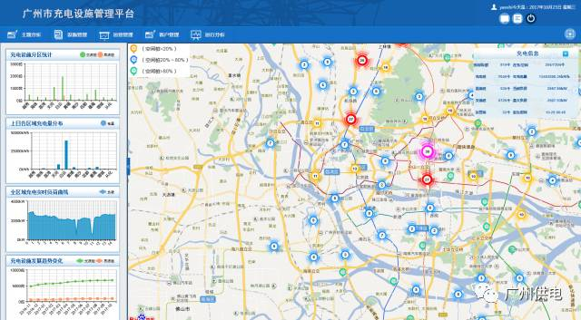 管理平台从多角度展示了广州市充电设施的运行情况,便于政府与电网公司对城市整体情况的管控;