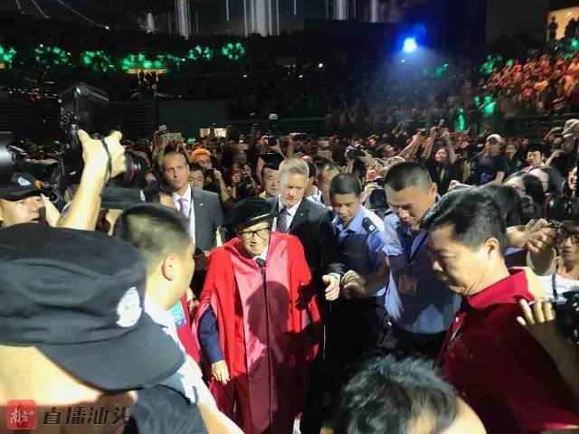 下图为2017年汕大毕业典礼,李嘉诚先生入场。