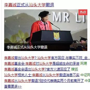 这则消息称:李嘉诚在汕头大学的基金会办公室已经被摘牌。原因是李嘉诚一直以来都是直接资助几个学院,拒绝校方“资金要先通过学校,再到学院”的要求。学校以“学院聘请教授、教师,或者举办活动都应先通过学校批准”卡住了学院的脖子,双方就此问题达不成一致意见,李嘉诚就此撤退。