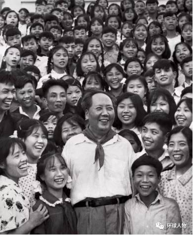 毛泽东和韶山中学的师生们,1959年。