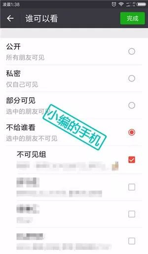 如果一定要在朋友圈抒发心情并且分组,那么部分可见比不给谁看要保险,看前文就知道啦~