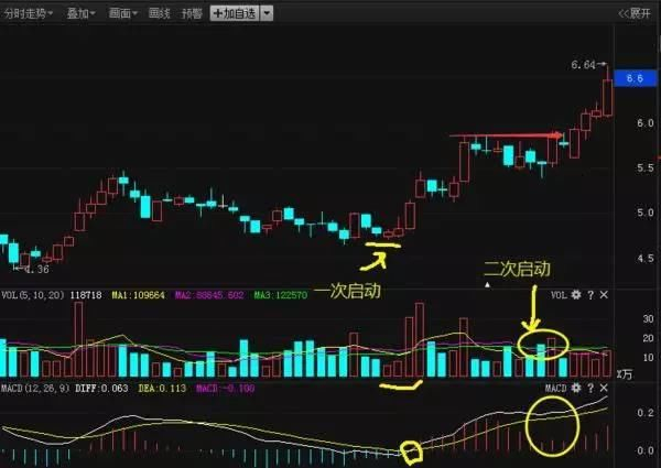 3)、MACD指标第二个金叉一旦形成,投资者就可以入场进行操作,特别是当股价放量上涨的时候,投资者必须要入场进行积极的追涨操作;