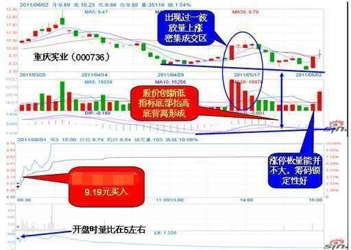 在底部,物极必反的绿色能量柱开始缩短所对应的股价如果是阴阳十字星,那么构成阶段性低点的概率就很大,所对应的位置就是买点,这是其一。