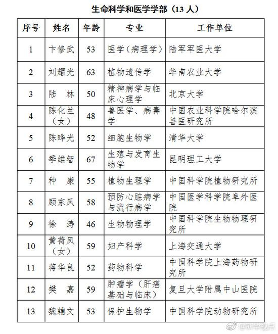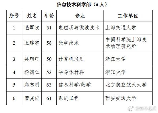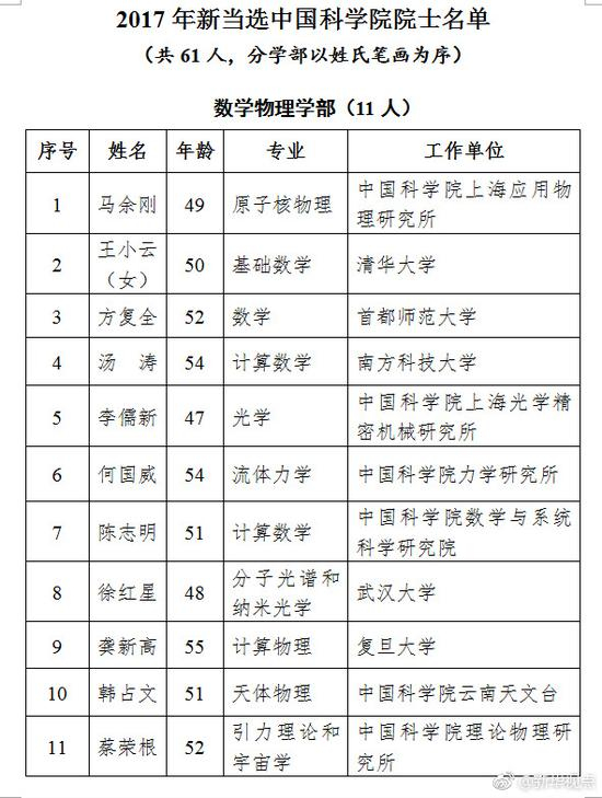 原标题:2017年中科院院士增选结果揭晓 61人当选平均年龄54.1岁
