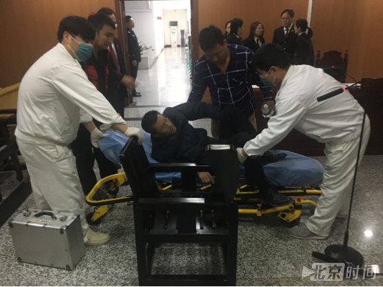 在等待药物的过程中,宋某手捂心脏部位,慢慢从座位上滑下躺到了地上,法官见状立刻拨打120呼叫了救护车。大概10分钟后,宋某的朋友回到法庭,喂他吃下了救心丸,此时救护车也赶到法庭,医护人员在法警的帮助下,将宋某抬上担架送往医院。