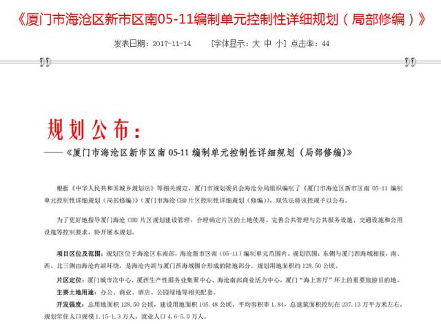 日前,厦门市规划委发布《海沧区临港(05-12)编制单元控制性详细规划(草案)》的公示。