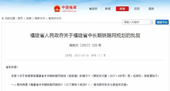 11月22日,省发改委网站公布《关于印发实施福建省中长期铁路网规划的通知》。它也是未来相当一段时期内,福建铁路建设的纲领性文件。