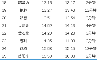 这趟高速列车的具体行程和站点