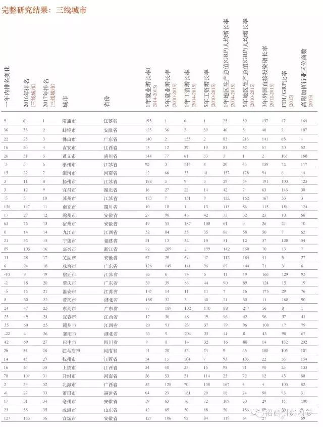 三线城市榜单
