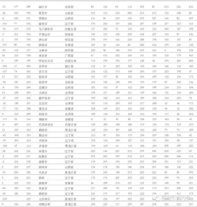 中国最佳表现城市这个排名关注的是城市经济增长的势头,主要依据9类常规和经常更新的统计数据。这些数据涵盖了就业、经济产出增长、工资、外商直接投资以及高附加值行业的集中度。它们都是由政府进行系统、频繁和定期搜集而来的。