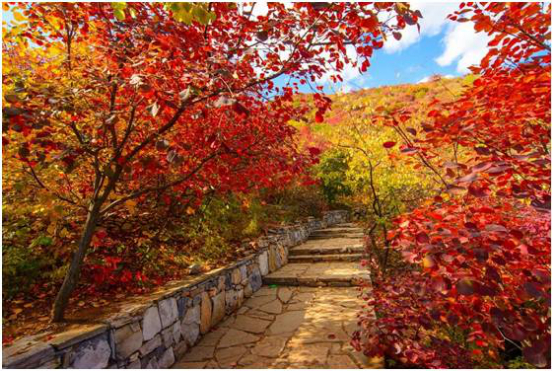 坡峰岭的红叶别有一番情致。如果说深秋香山是“万山红遍,层林浸染”,那么坡峰岭则是“红叶绿中游,彩练当空舞”。艳丽的色彩源自这里种类丰富的植物资源。红叶节期间还推出历程摄影展、幽岚杯自由摄影大赛、登山比赛等多种互动体验活动。