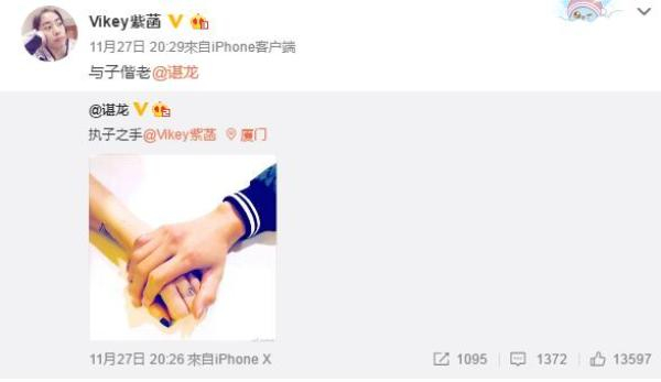 求婚成功后,谌龙透露自己将与女友在今年年底领证。此后,他还在微博上发布了一张两人牵手的照片,并配文“执子之手”,王适娴也随即回复道:“与子偕老”。