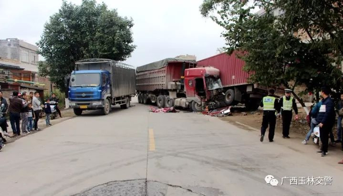 事发玉林城北排榜村路段,一辆重型货车连撞三车原因是……
