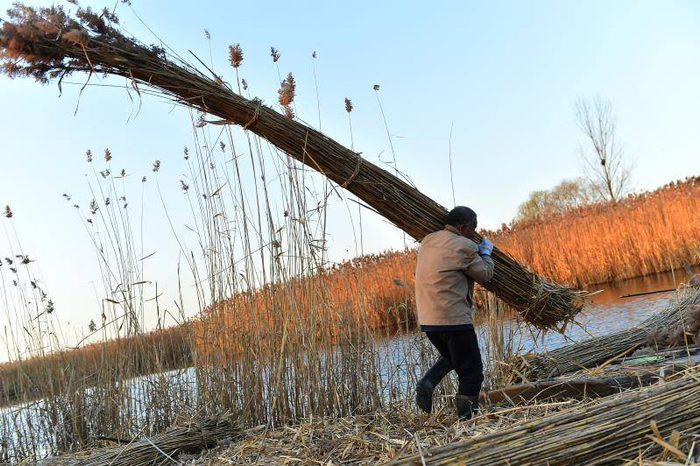 圈头乡的一位工作人员介绍称,仅大田庄村就有近1500亩苇田,每家平均有2亩左右苇地,除此之外,还有一部分水中的苇田是归村子集体所有的。“这几年村民‘打苇’的积极性确实不高,但是苇子如果不收,不仅会影响来年新苇子的质量,烂掉之后还会污染水质,造成水质的富营养化。”