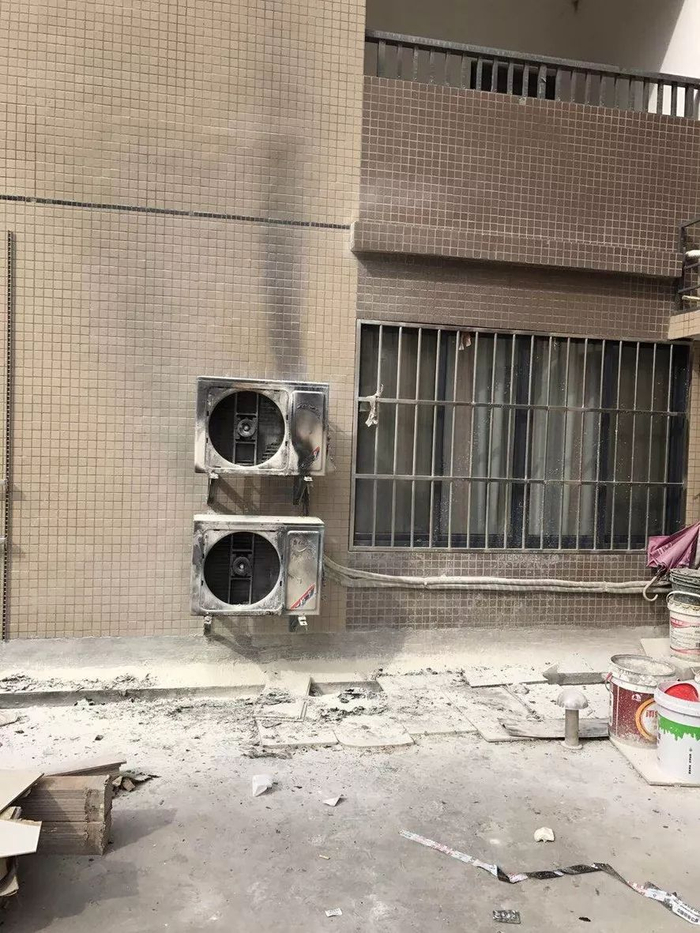 两台空调外机被烧毁