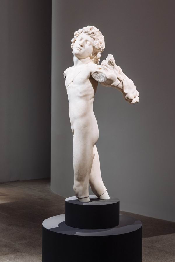 关于米开朗基罗的第一件作品众说纷纭,这场轰轰烈烈的争论主要围绕着《年轻的射手》这座雕像展开。很多年来,这尊裸体男性青年雕塑一直树立在第五大道上的法国大使馆文化部的办公室里,与Met恰好面对面,却无人问津。直到1996年,一位艺术史学者认出这件雕塑实则出自米开朗基罗之手。他的猜想马上引发了激烈的辩论,但最终这一猜想得到了大多数人的认同。如今雕塑上贴着的日期写着“约1496-1497年”,不难猜想米开朗基罗是在自己21岁那年雕刻了这件作品,这也许让他享有了一代奇才的美名。