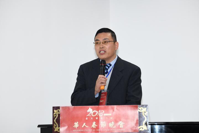 意大利浙江大学校友会会长、米兰浙里文化交流中心主席蔡茂生博士代表主办方致辞,他向大家简单介绍了“意大利华人春节晚会”的诞生和筹备情况,2017年春节前夕,主办方萌发了创办一个意大利本土化的华人春节晚会的念头,旨在通过海外华人侨胞和意大利民众共度中国农历春节,建立一个促进中西文化交流,增进了解的平台。也欲藉此机会给意大利华人华侨以及子女提供一个展示自我才艺的舞台,培养华人子女对祖籍国的认同感,让他们不忘“根”本,继续秉承中华民族优秀传统。他宣布第二届意大利华人春晚将于2018年2月9日19:00在米兰Teatro Dal Verme剧院举行。 剧院地址 Via S. Giovanni sul Muro 2, Milano。