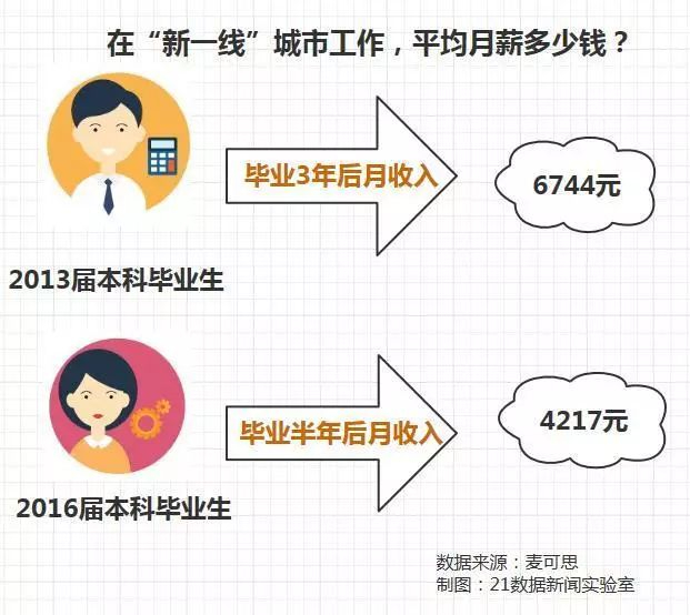 在北上广深工作,月薪大概有多少?麦可思数据显示,2013届本科毕业生,毕业3年后,他们拿到的月薪平均为8644元。而2016届本科毕业生,毕业半年后,月薪为5437元。