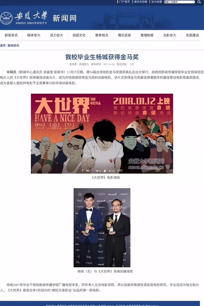 安大毕业生担任制片人,获金马奖最佳动画长片奖