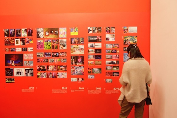 蜷川实花在布展有一个非常大的特点,就是同主题下的大量展品被制作成相同大小,并以矩阵的方式排列。如果留意展览中蜷川实花年表部分的历史照片,会发现这是她一贯的布展风格。矩阵的特点是去中心化,均质化,否认作品和作品之间的因果或逻辑关联,拒绝重点,拒绝排序。