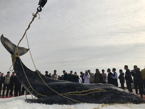 经判断,它是一头雄性幼鲸,重量达2.8吨。