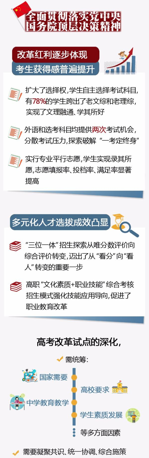 为进一步推动改革向纵深发展,浙江省通过线上线下问卷调查、召开各类座谈会等方式广泛征集教师、学生和家长等各方面的意见建议,组织专家认真评估、分析、论证,将这些意见建议最大程度的吸纳体现在《意见》中,对高考综合改革进行优化。