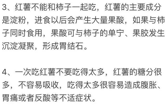 2、湿阻脾胃、气滞食积的人应该尽量不要吃红薯。胃酸过多、胃溃疡患者也不应该吃红薯。