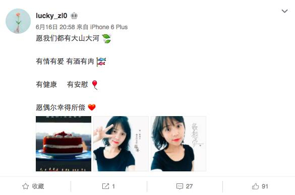 今天是我手术后的第九天,是化疗的第一天。是的,此时此刻我才正视自己是癌症患者。我不知道是自己经历太多还是内心太强大,术后到现在一滴眼泪都没有流过。癌症这两个字谁听到都觉得可怕,可是我没有。……姐们必须强大起来,虽然现在还没有拔引流管,伤口还痛,不过一切都在慢慢的恢复,这就是最好的。辛苦了爸妈亲人朋友还有你每天换着花样给我炖汤喝,感觉自己很幸福。人生就是如此,不要等到飞机不知道去哪儿了,才想起没有好好告别;不要等到失去这个人,才后悔对他做的一切;不要等到留不住才知道,很多事没有做,有很多“我爱你”、“对不起”没有说。假如我们把每一刻都可以当作生命的最后一刻去爱,去宽容,去珍惜,那么就算飞机不知道去哪儿了,你也不会有太多的遗憾;就算有人有一天突然不在了,你也不会责备自己没有好好爱。生活就是如此,每个人都一样,做不到珍惜每分每秒,那就尽量不要留下遗憾吧,希望大家都健康。