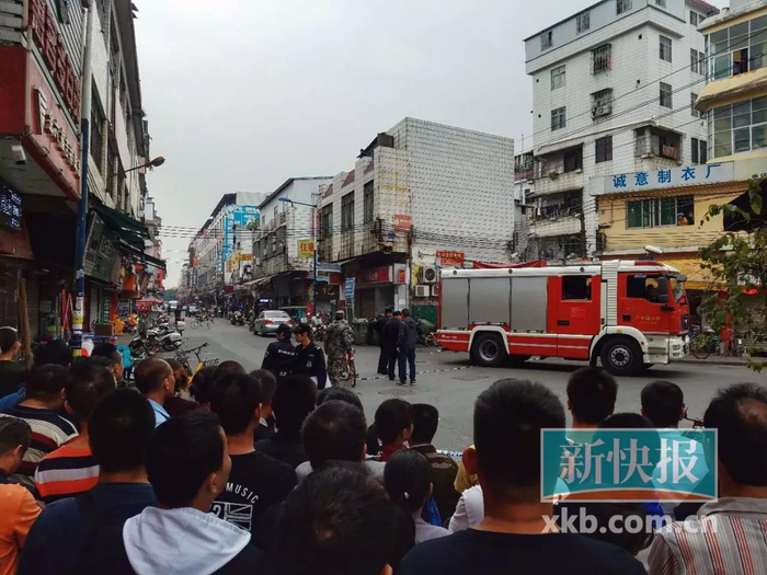 事发现场位于后滘西大街中段。今天下午三时许,新快报接报后赶到现场看到,警方拉起了近百米长的警戒线封锁现场,事发餐馆附近的商铺均已拉闸关门,多辆警车、消防车和救护车在现场严阵以待,谈判专家及羊城突击队也已到场处置。