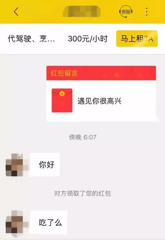 在聊天界面,软件还提示如果想得到回复可以尝试发红包。记者试着给几人发送了小额红包。没想到,立马就有了回音。看来就算不见面,靠着这些红包收入,出租人也能赚到钱。