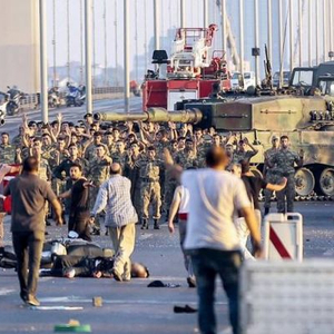 资料图:在2016年土耳其军队发动的政变中,民众与政变部队正在对峙。
