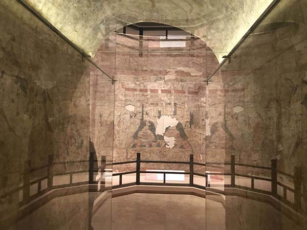 除了著名的北齐娄叡墓壁画,复原墓室搭建的《朔州水泉梁北齐壁画墓》今天完美展现出其气势恢弘,观众进入其间仿佛身临其境,充分领略北齐绘画之美。