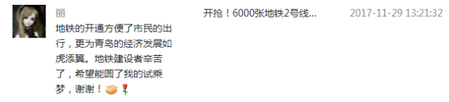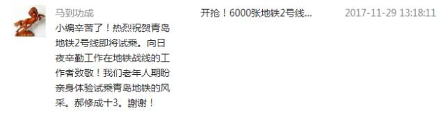 也送上对青岛地铁的祝福