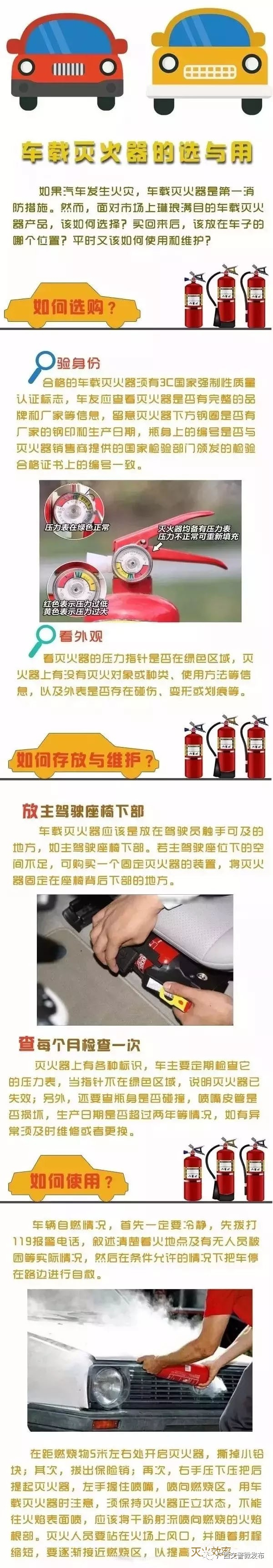 122益起来|车辆自燃怎么办?!南宁交警小黑教你如何正确使用车载灭火器