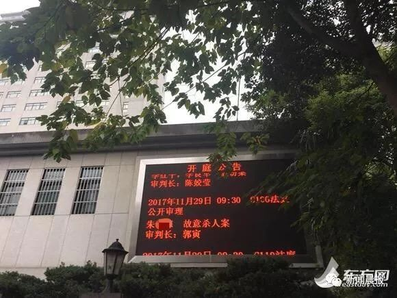 ▲11月29日上午,上海二中院门口的开庭公告宣布今日审理朱某某故意杀人案。