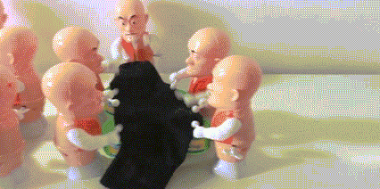 因为它们是一些上发条的小玩具,每当最后一个小玩具上好发条的时候,第一个玩具已经停了。