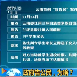 佟丽华:如果父母或者子女违反了这个九年义务教育,我们现在根据义务教育法只能叫批评教育,责令他改正,也就是这个法力确实是太弱了,如果父母和孩子不遵守这个法律,我们缺乏强制性的这样一个措施,以至于当地政府现在是不得不提起诉讼。这个诉讼具有普法的性质,在不得已而为之的情况下也是一种探索,如果父母不送孩子,那可能法院就要强制执行。