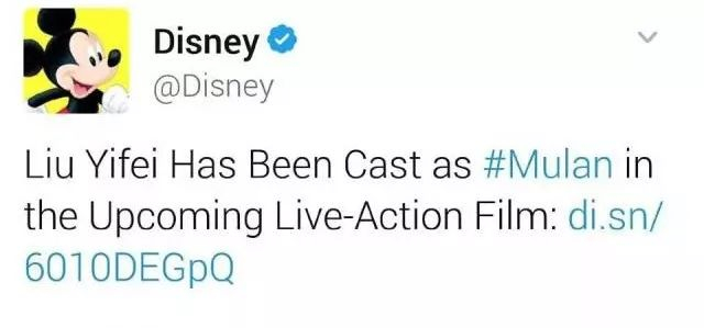 还记得小时候看的《花木兰》动画片嘛?昨晚,迪士尼花木兰真人版电影的女主角终于定了,是刘亦菲。↓↓